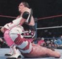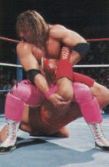 | 针对敌人的颈部进行攻击。这招一直是布雷特的“胜利方程式”之一。 | 跳水式锐角肘击炸裂!喜欢装死的瑞克·弗雷亚这下终于吃到苦头了…… | 虽然弗雷亚有必杀的足四字固定,但是布雷特的蝎子固定式还是胜出! | 让人跌破眼镜的初戴冠!这场比赛已经变成想看也看不到的梦幻试合了。 |