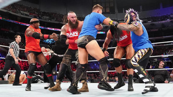 同样备受关注的就是由罗曼·雷恩斯领衔的这场战队赛!在开战之初,双方的力量差距都非常明显,兰迪·奥顿一方有诸多肌肉男,这其中包括了德鲁·麦金泰尔以及鲍比·莱斯利!