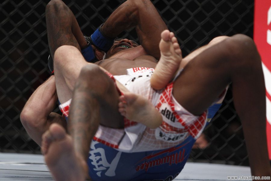 第四回合:琼斯将贝尔福特拖入地面后,实施了木村锁,最终降伏获胜,第四次成功为卫冕了UFC轻重量级腰带。