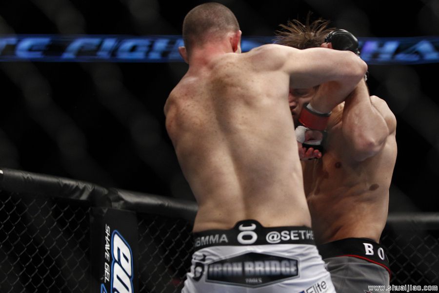 第二回合:虽然依然以站立战为主,但是贝纳维德兹开始尝试进行TD,可惜几次均未成功,两人在场面上不分上下。